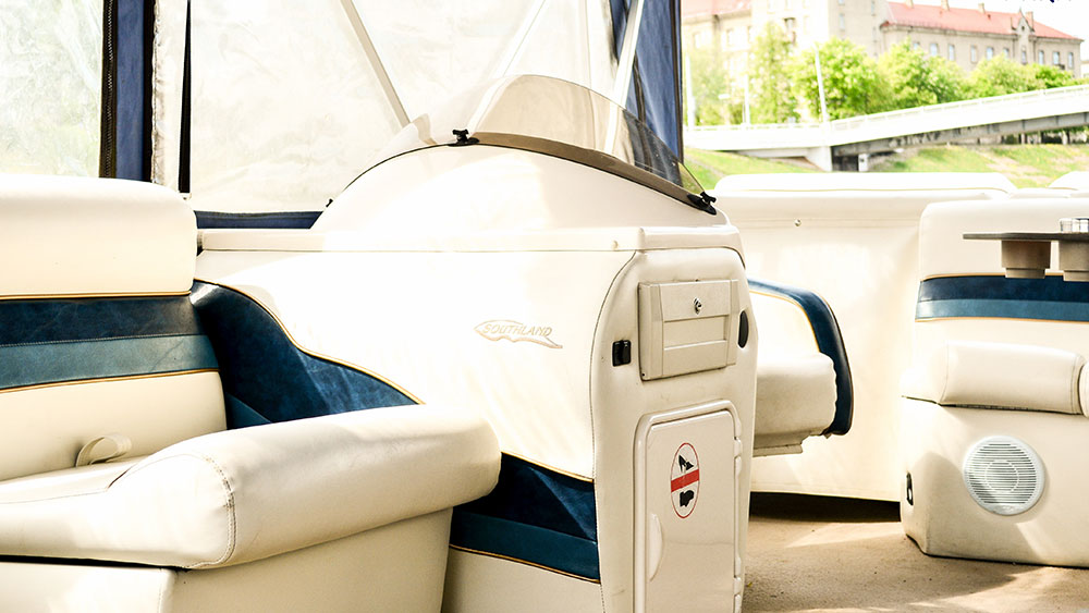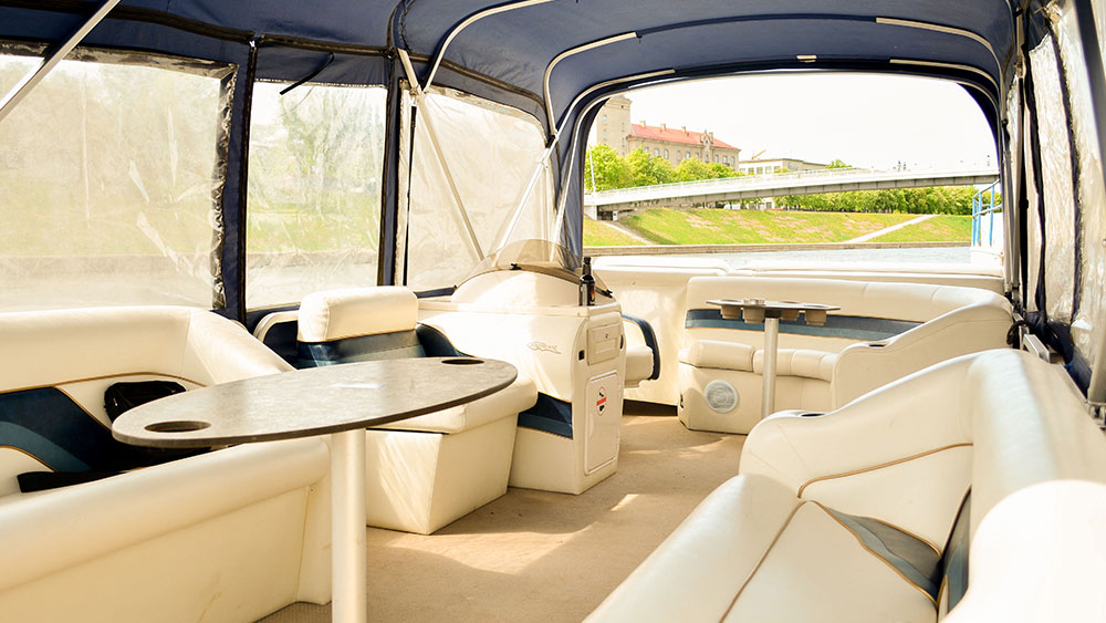 Laive įrengtos patogios sėdynės ir keli staliukai, ant kurių galite pasidėti užkandžius ar gėrimus. Tai mažos, bet labai svarbios detalės, kurios daro plaukimą patogų - nereikia improvizuoti ar laikyti taurės rankoje visą vakarą.